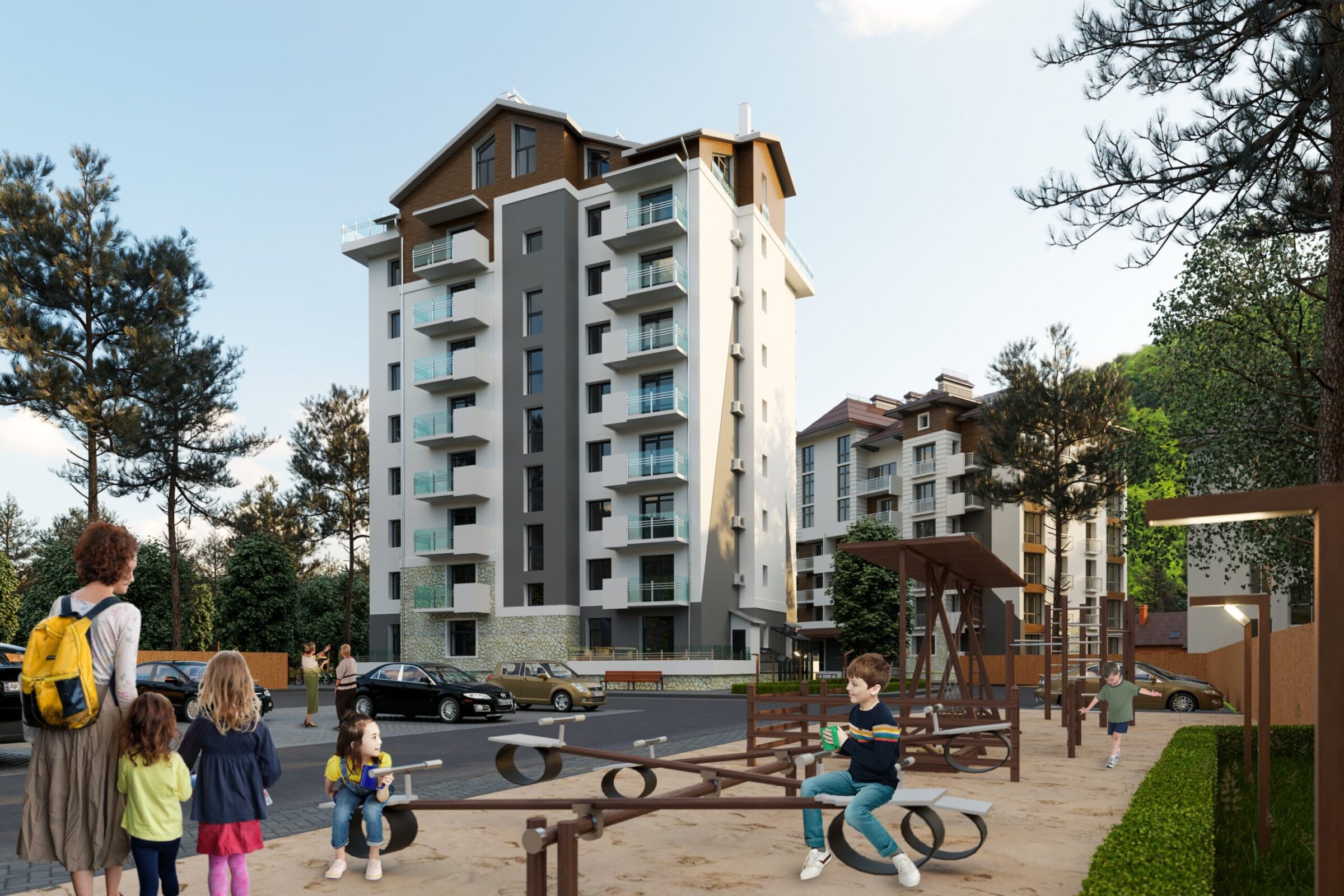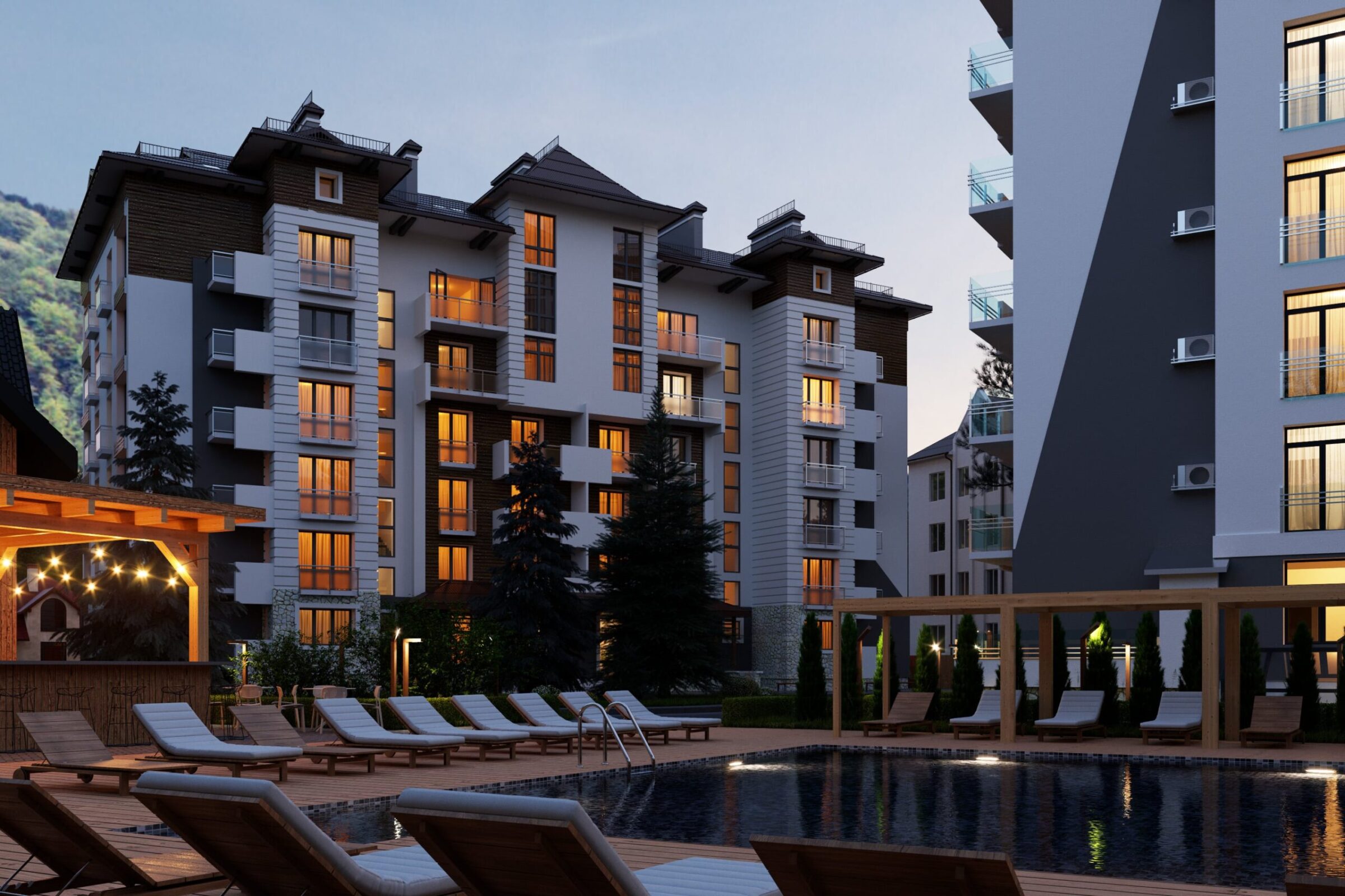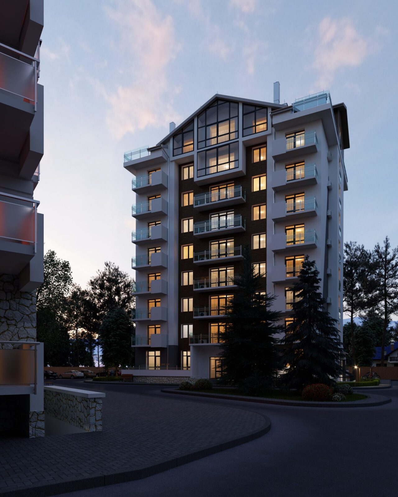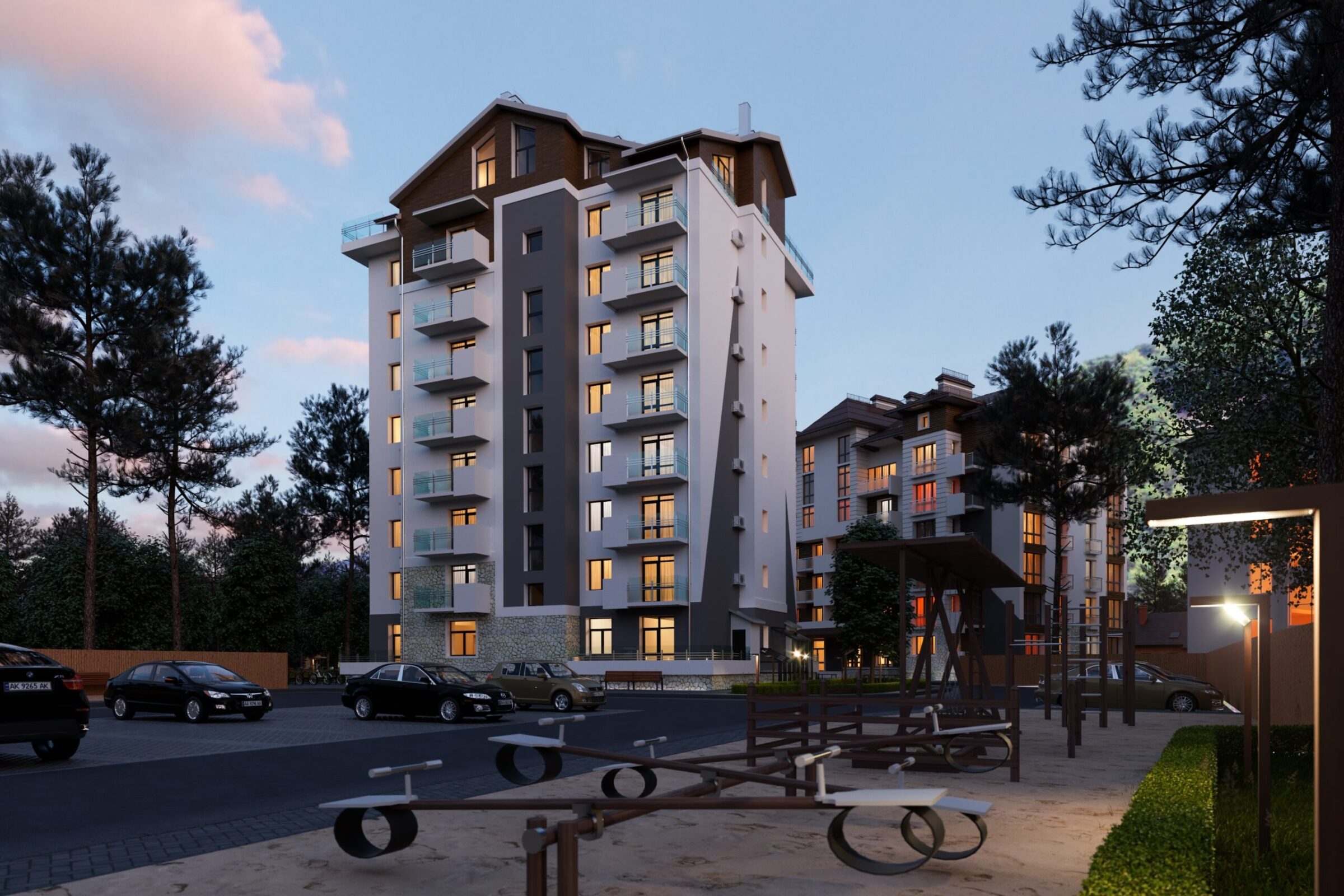 КРАЙОБРАЗ – це апартаменти бізнес-класу в самому центрі туристичного містечка Яремче, всього в 30 км від гірськолижного курорту Буковель. Тут розвинена інфраструктура межує з національним колоритом, а туристичний сезон триває цілий рік. Взимку можна насолодитися неймовірними пейзажами та гірськолижною активністю. Літо та осінь – прекрасна пора для піших прогулянок, збору ягід та грибів. Отже, це місто дуже приваблює охочих придбати квартиру для власного відпочинку або отримання пасивного доходу. Звідси – сталий попит на житлову нерухомість Яремчі.