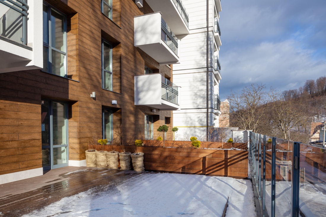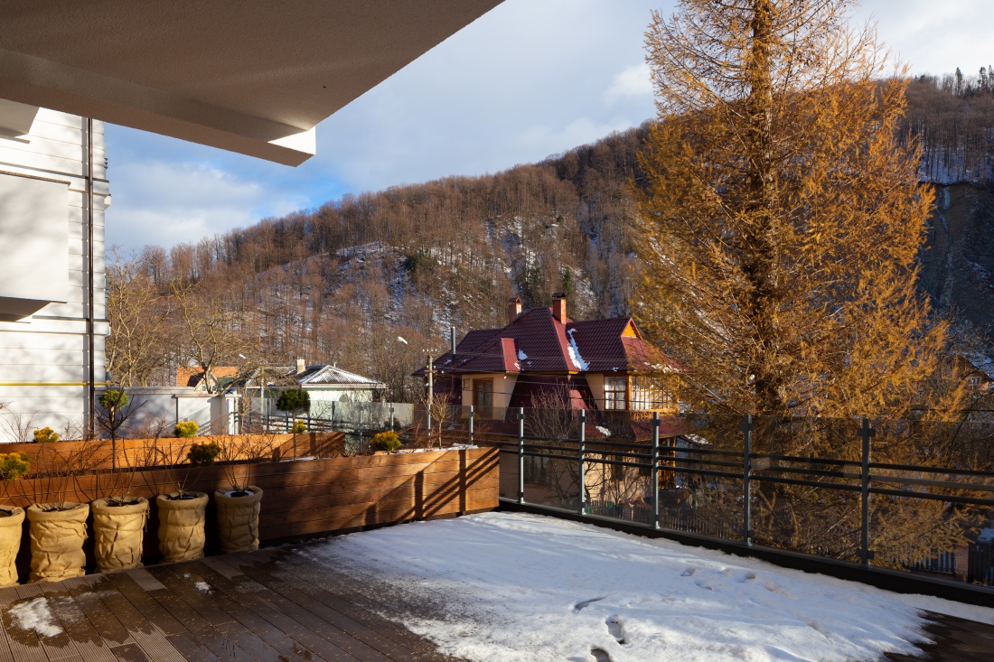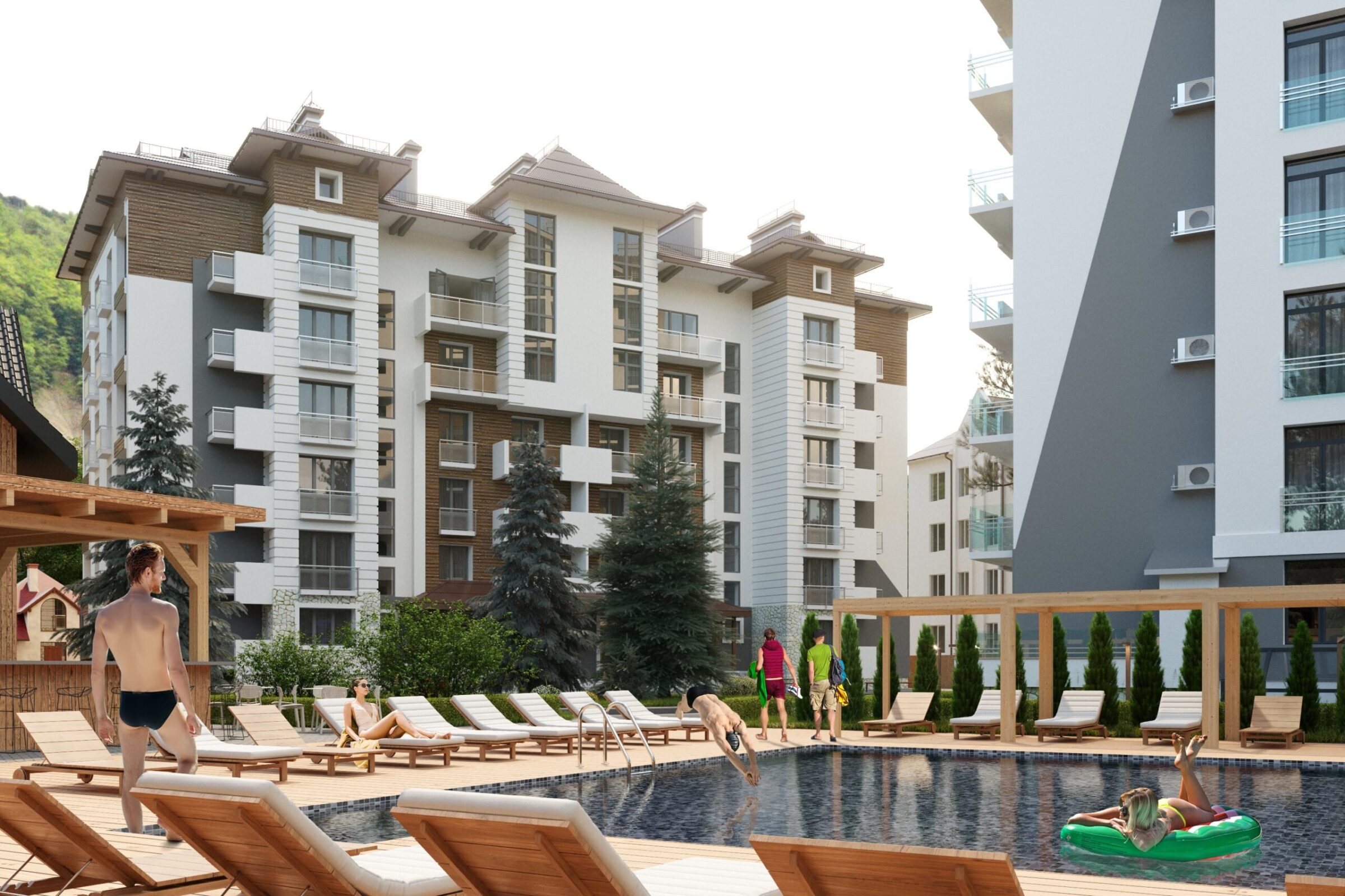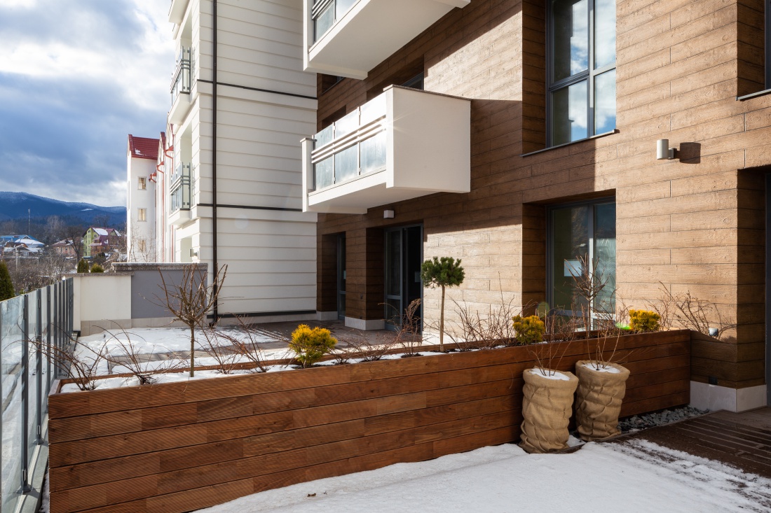 КРАЙОБРАЗ – це апартаменти бізнес-класу в самому центрі туристичного містечка Яремче, всього в 30 км від гірськолижного курорту Буковель. Тут розвинена інфраструктура межує з національним колоритом, а туристичний сезон триває цілий рік. Взимку можна насолодитися неймовірними пейзажами та гірськолижною активністю. Літо та осінь – прекрасна пора для піших прогулянок, збору ягід та грибів. Отже, це місто дуже приваблює охочих придбати квартиру для власного відпочинку або отримання пасивного доходу. Звідси – сталий попит на житлову нерухомість Яремчі.