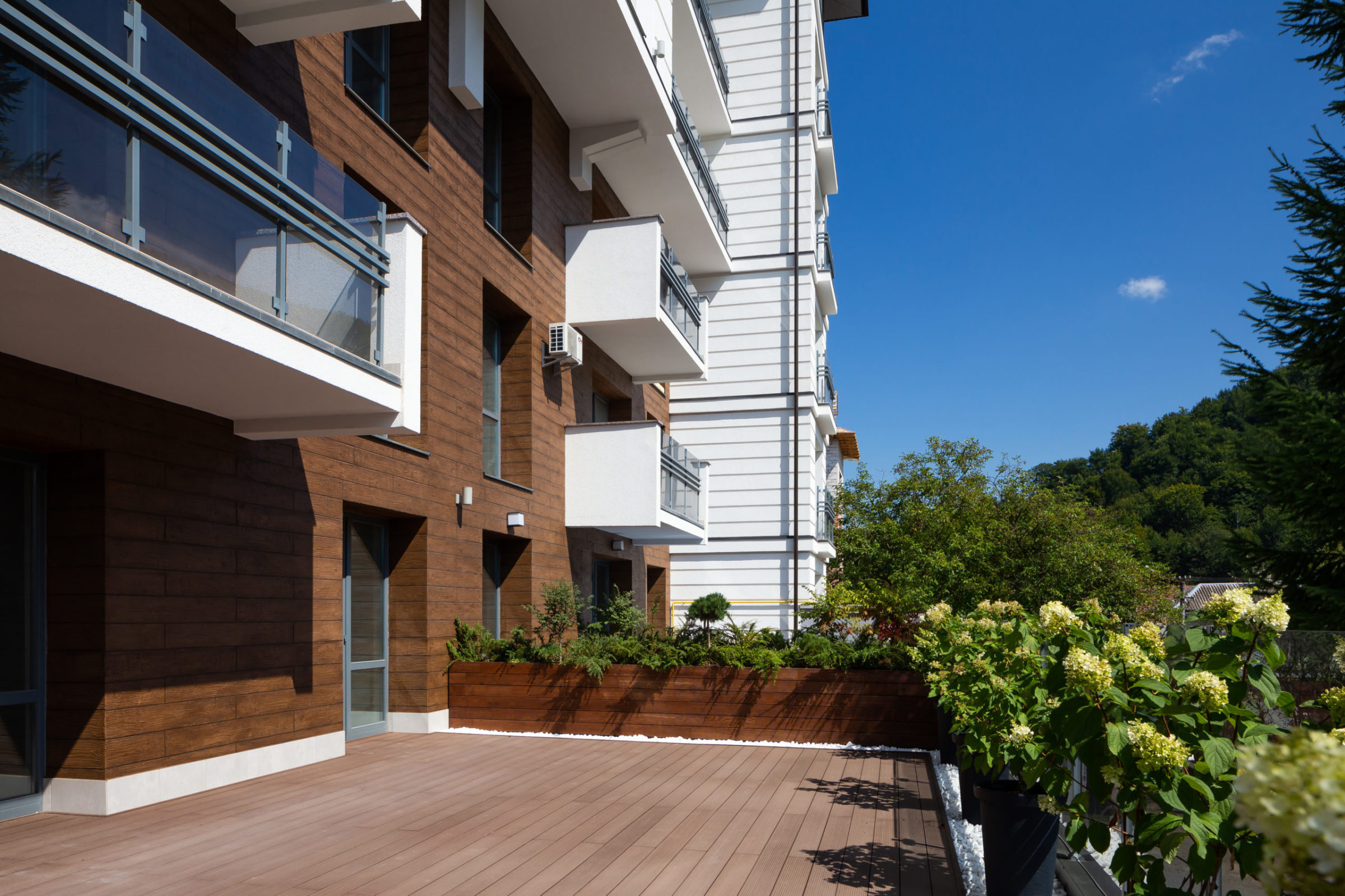 КРАЙОБРАЗ пропонує комбінований формат житлової нерухомості, який включає апартаменти з базовим облаштуванням без ремонту, а також помешкання з ремонтом, управління якими візьме на себе кваліфікована команда керуючої компанії. Який формат ви б не обрали, з КРАЙОБРАЗ ви отримаєте дитячий ігровий простір з спортивною зоною, приміщення для зберігання інвентарю, територію зелених «островів» і місця для паркування, відкритий плавальний басейн, поруч SPA зону, ресторанний комплекс і навіть стоматологічну клініку.